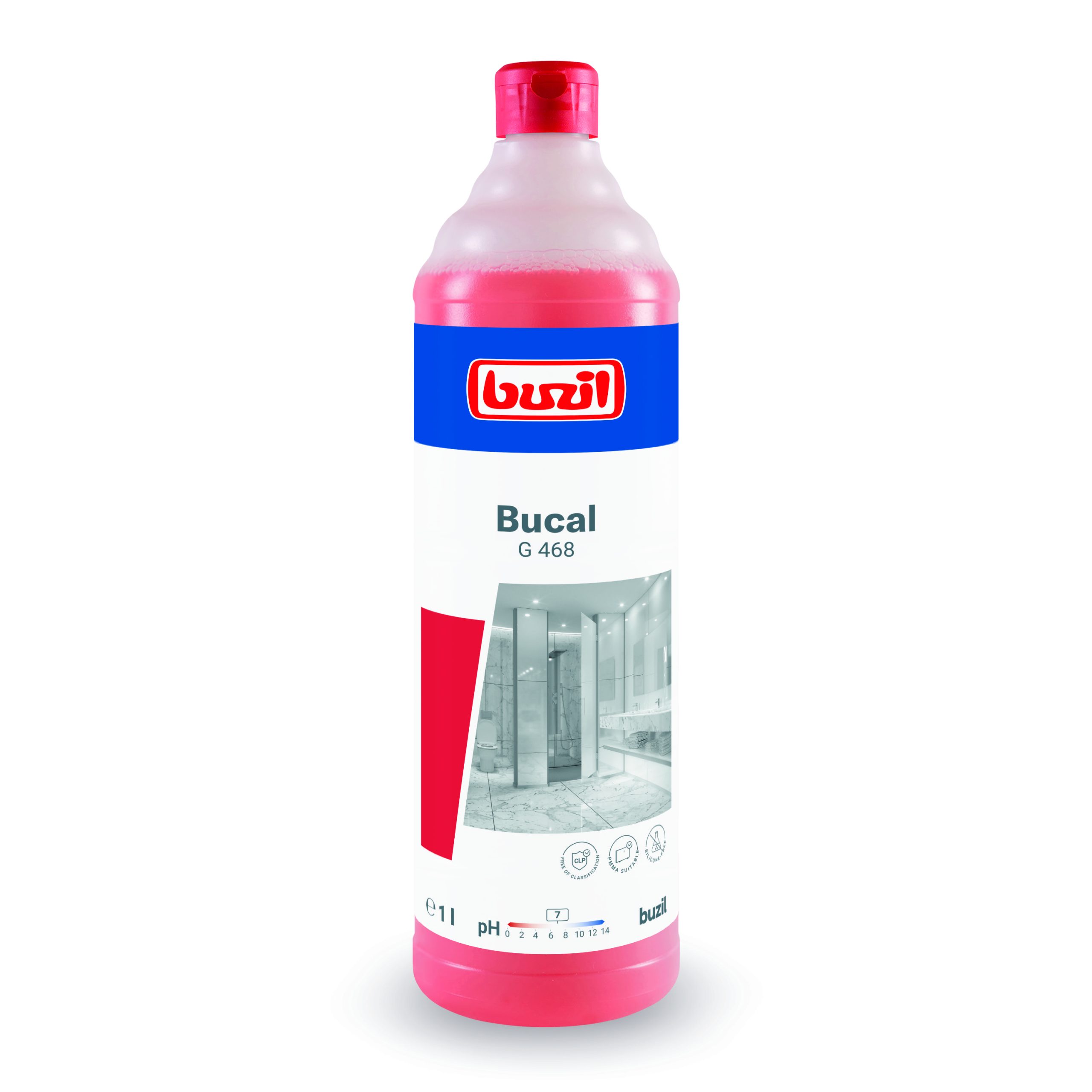 Bucal 1L to neutralny, zapachowy środek stosowany do codziennego mycia nawierzchni w sanitariatach oraz pomieszczeniach wilgotnych występujących na basenach, w obiektach sportowych czy w przebieralniach. Produkt stosowany na nawierzchniach wrażliwych takich jak emalia, aluminium, mosiądz oraz do podłóg wrażliwych na działanie kwasów np. z marmuru czy wapnienia muszlowego. Skutecznie doczyszcza, pozostawia długotrwały, przyjemny zapach stworzony w technologii neofresh. Wysycha szybko bez pozostawiania smug dzięki efektowi skraplania. Doskonale sprawdza się w obszarach występowania twardej wody.