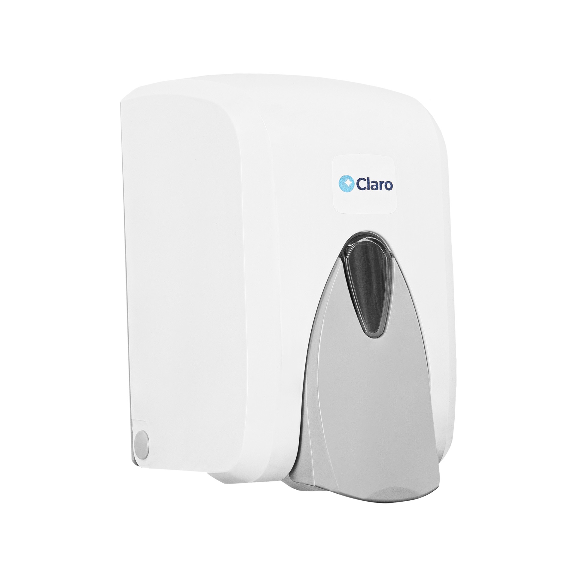 Nowoczesny w białym kolorze podajnik do mydła. Dozownik posiada wygodny wizjer do kontroli ilości mydła. Pojemnik posiada prosty sposób do uruchamiania, dotykając przycisku na przednim panelu mydło podawane jest w dolnej części dozownika. Dozownik zamykany na plastikowy kluczyk. Pojemnik wykonany z wzmacniany plastik ABS. Mydło do dozownika uzupełniamy z dowolnego kanistra lub butelki.