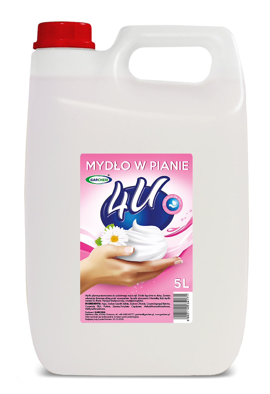 Doskonale myjące i delikatne dla skóry mydło w pianie. Wydajne opakowanie 5 litrów wystarczy zapewni dozowanie na długie tygodnie.