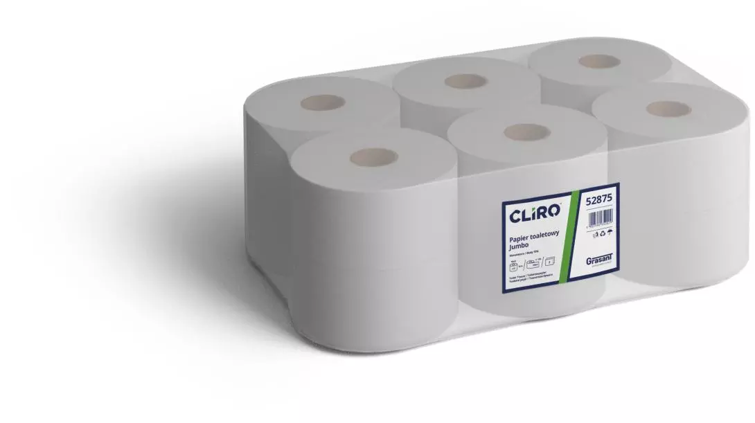 Grasant Cliro 52875 to wydajny, dwuwarstwowy papier toaletowy typu Jumbo, wykonany z wysokiej jakości makulatury o 75% poziomie białości. To ekonomiczny papier toaletowy zaprojektowany z myślą o miejscach, gdzie liczy się niski koszt eksploatacji, trwałość, wydajność i funkcjonalność.