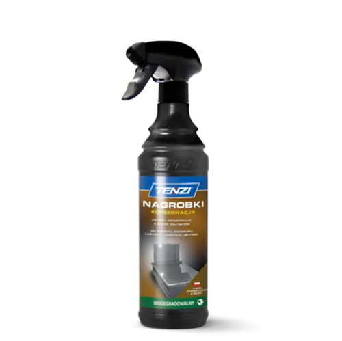 Innowacyjny produkt do konserwacji płyt nagrobkowych z granitu, marmuru, lastrico, kamienia. Konserwuje powierzchnię. Niezawodnie chroni płytę nagrobków przed nadmiernym zabrudzeniem pochodzenia atmosferycznego. Dla wzbogaconego efektu, przed użyciem preparatu konserwującego zaleca się dokładne umycie pomnika preparatem Tenzi Nagrobki Czyszczenie.